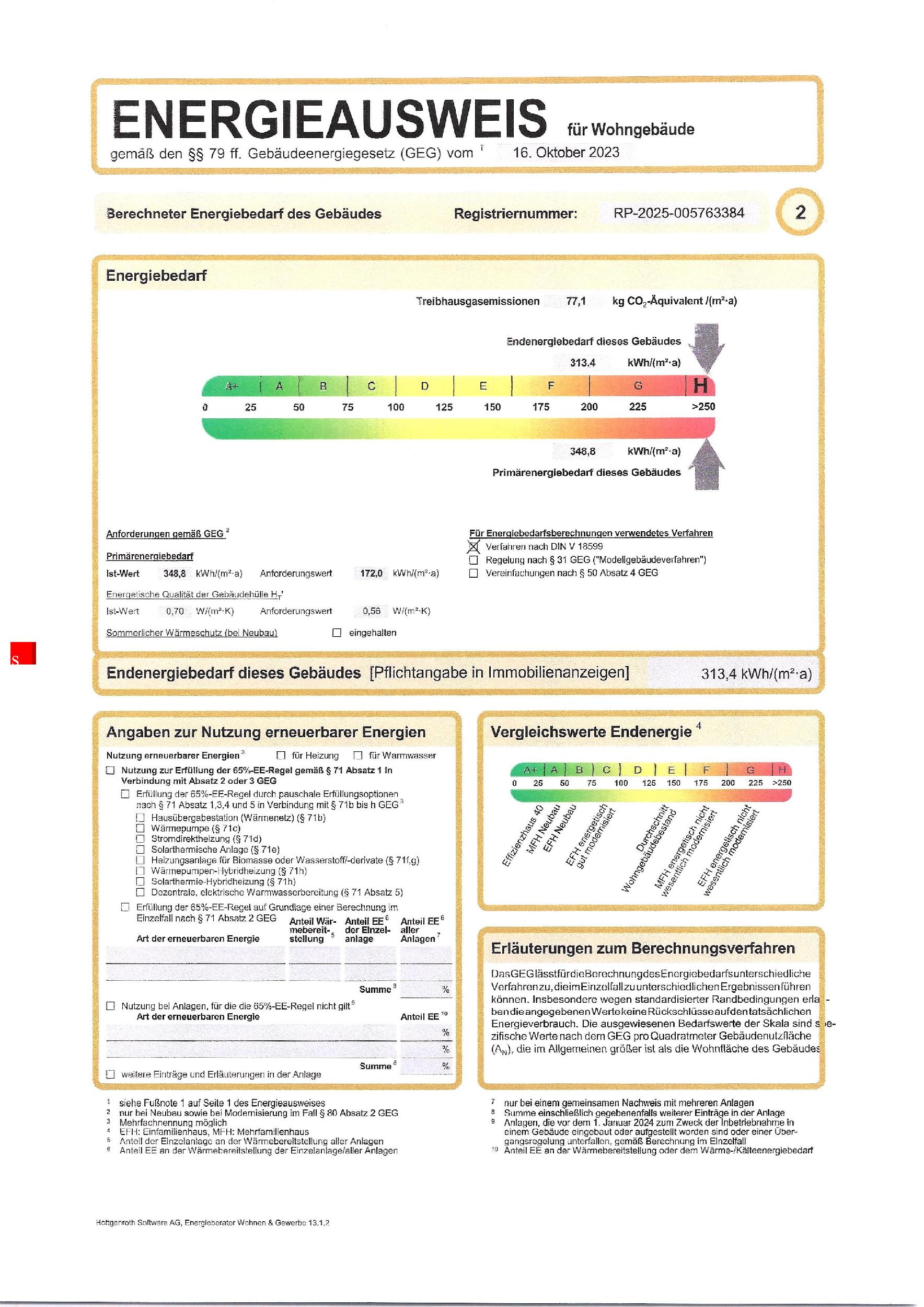 | Endenergiebedarf insgesamt | ca. 313,4 kWh/(m²a) |