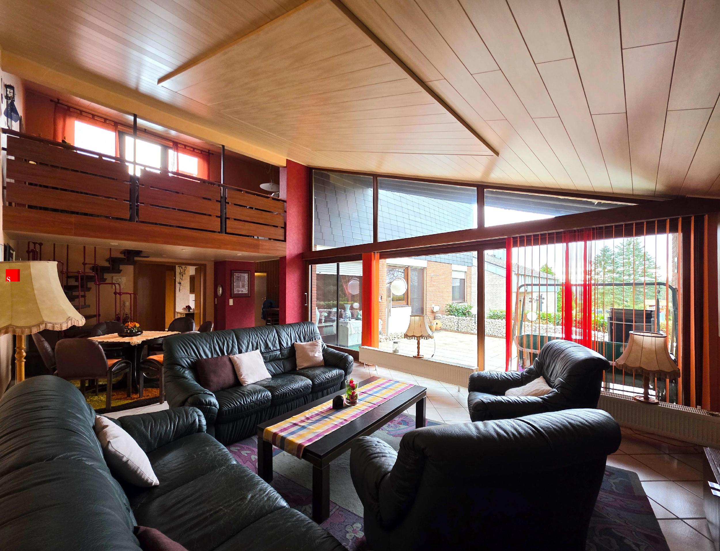 Ein besonderes Highlight ist das lichtdurchflutete Wohnzimmer mit bodentiefen Fenstern und herrlichem Ausblick ins Grüne. Eine offene Galerie schafft ein zusätzliches Raumgefühl und verleiht dem Haus architektonischen Charakter. Das ca. 2.004 m² große Grundstück ist ein echtes Highlight dieser Immobilie. Es bietet viel Platz für Gartenliebhaber, Familien oder alle, die Wert auf Weite, Ruhe und Gestaltungsmöglichkeiten legen. Der Terrassenbelag wurde vor ca. 10 Jahren erneuert und lädt zum Verweilen im Freien ein.